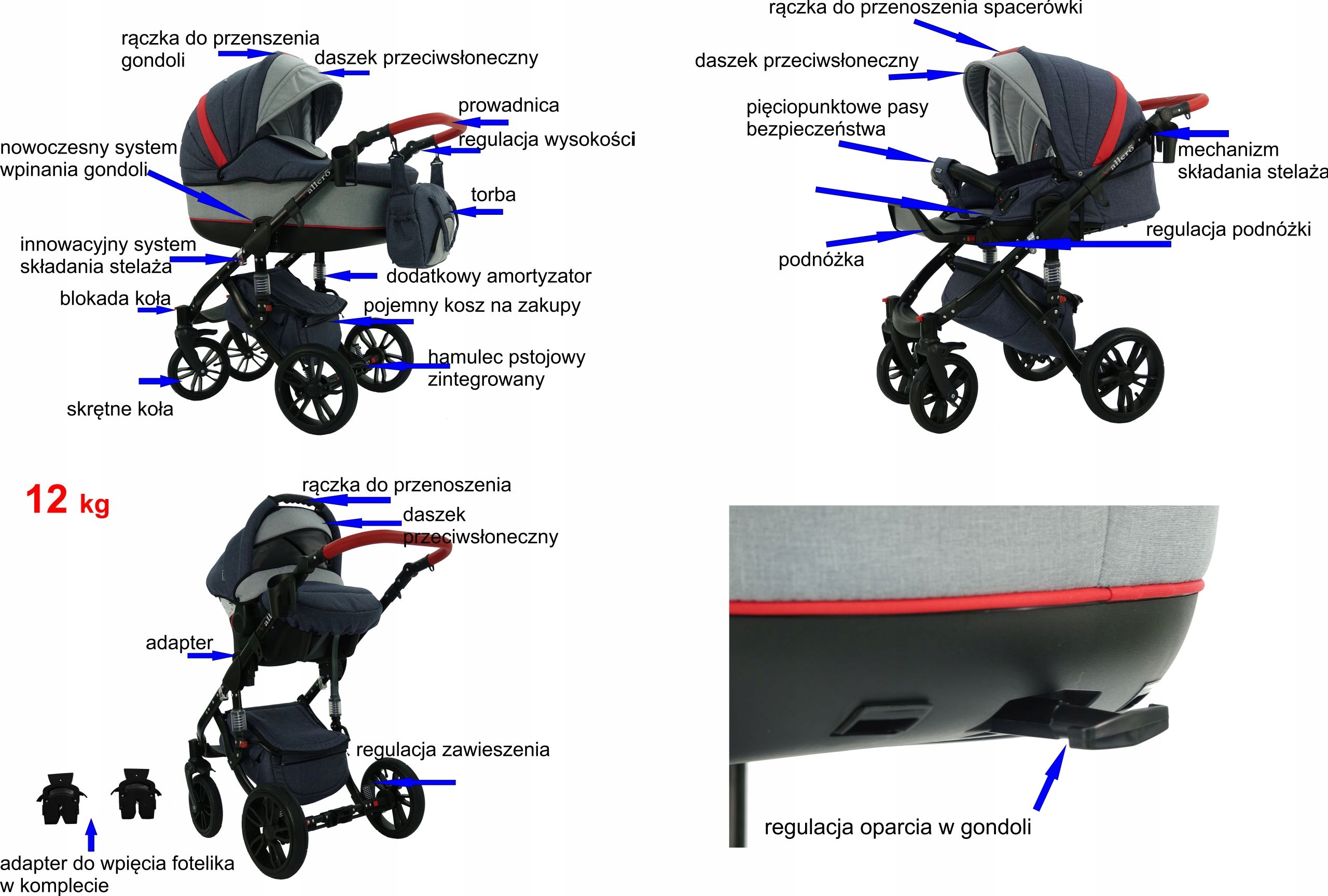 VALLERO alu — премьерная модель глубокой -прогулочная коляска на алюминиевой раме с инновационной системой складывания.VALLERO алюминий имеет направляющую, обтянутую эко-кожей, вместительную корзину для покупок и очень легкую пластиковую коляску, а также регулируемую спинку коляски и регулируемую снаружи спинку гондолы. благодаря современной системе.Кроме того, высота направляющей и подножки регулируются.Гондола и коляска могут крепиться спереди или сзади по направлению движения.Каждый элемент имеет отдельный чехол для ножек