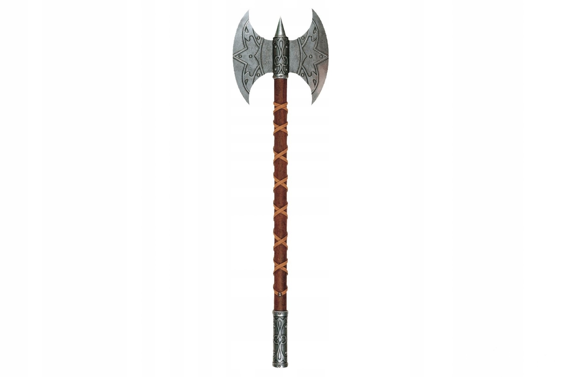 Представленная реплика является успешной попыткой поэмбинировать топор войны «Valquiria». Удивительный двусторонний лезвие, в цвете старого серебра с резными украшениями, очень массивная конструкция. Деревянная ручка, украшенная плетеном ремнем и заканчивалась металлическим вырезанным одеялом.
