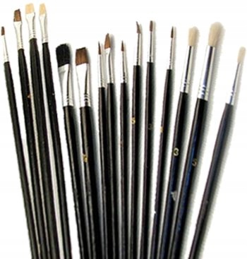 - 15 кистей (размером 17-26 см, плоские и круглые)