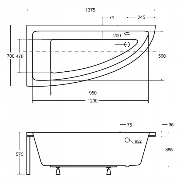 Высота края ванны: 3,5 [см]