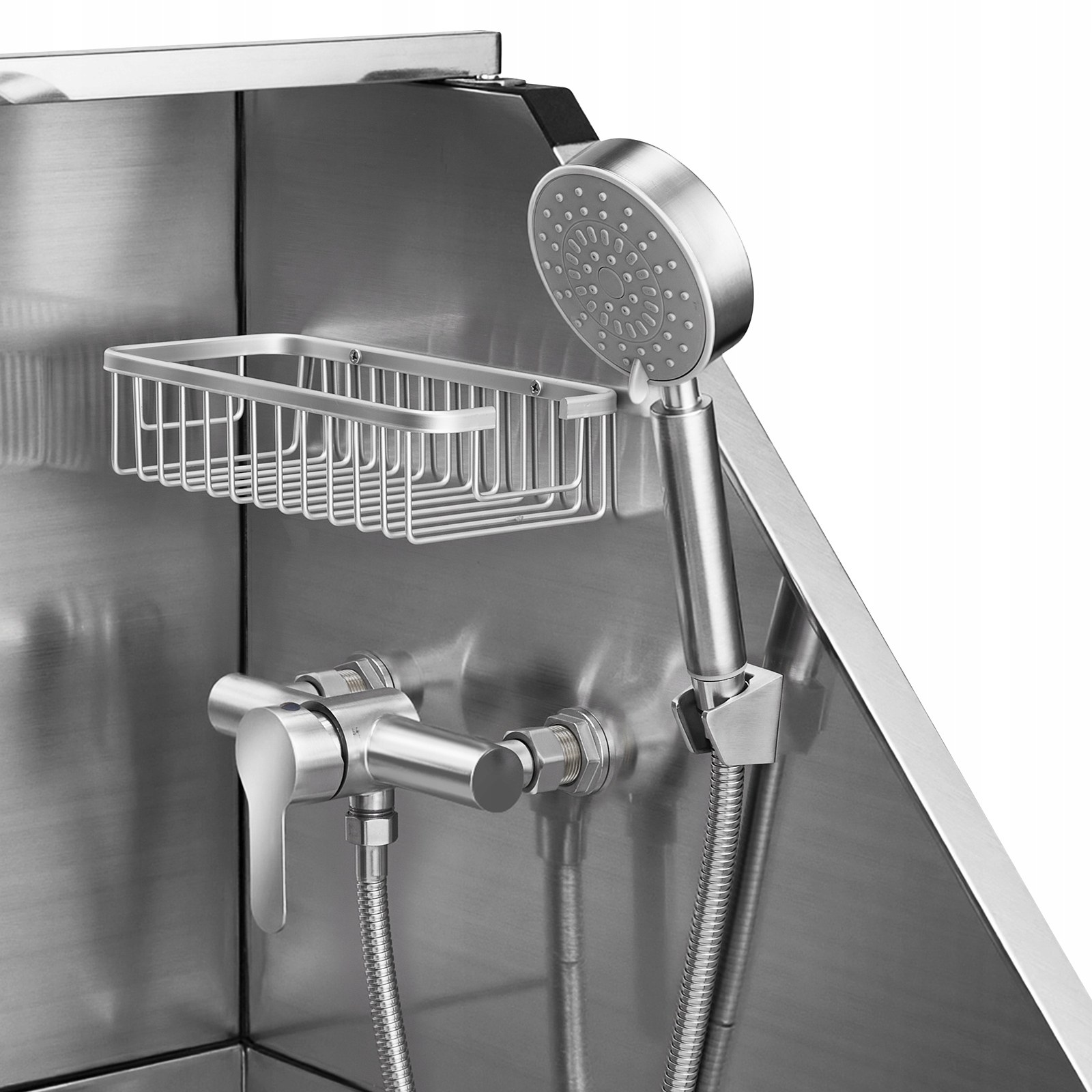 С подставкой для мыла, краном, ручным душем и переключателем горячей/холодной воды