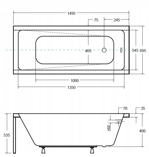 Высота края ванны: 3,5 [см]