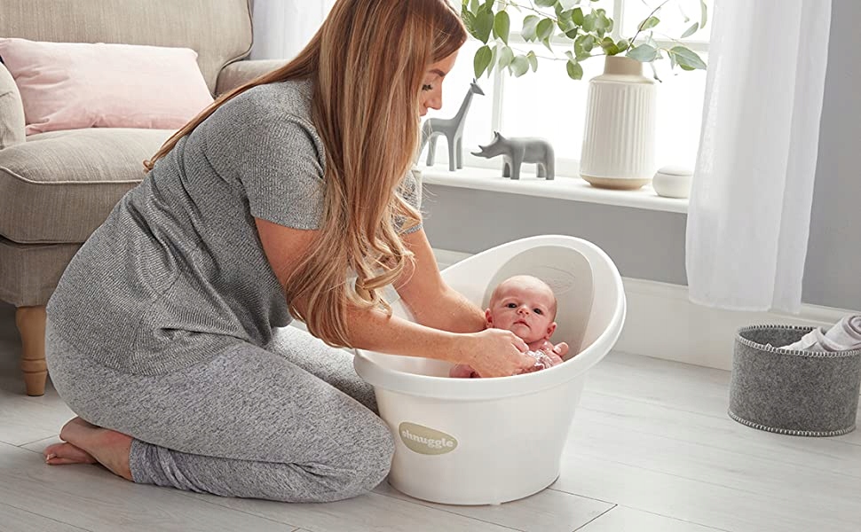 В ванне Shnuggle один из родителей может безопасно и комфортно купать ребенка без посторонней помощи.