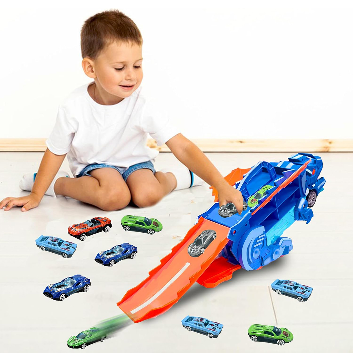 Грузовик Dino Transport с 12 машинками и гоночной трассой для мальчиков