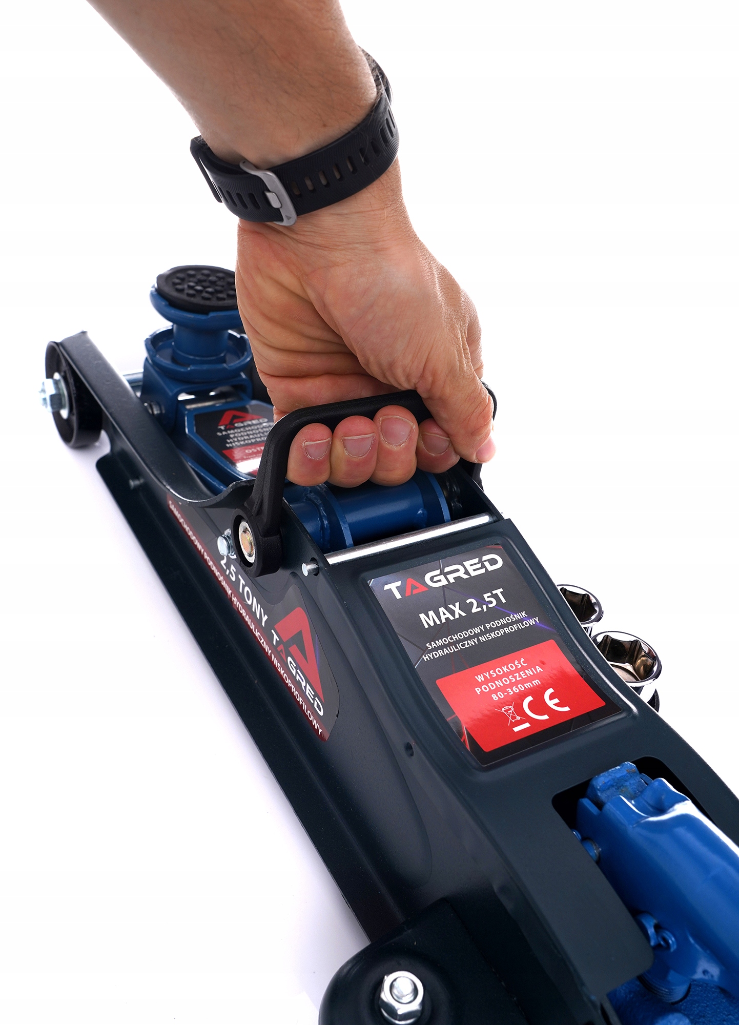 Мы оснастили наш подъемник предохранительным перепускным клапаном и увеличили колею колес до 200 мм, что существенно повышает безопасность! Да, домкраты TAGRED более устойчивы при подъеме автомобиля.