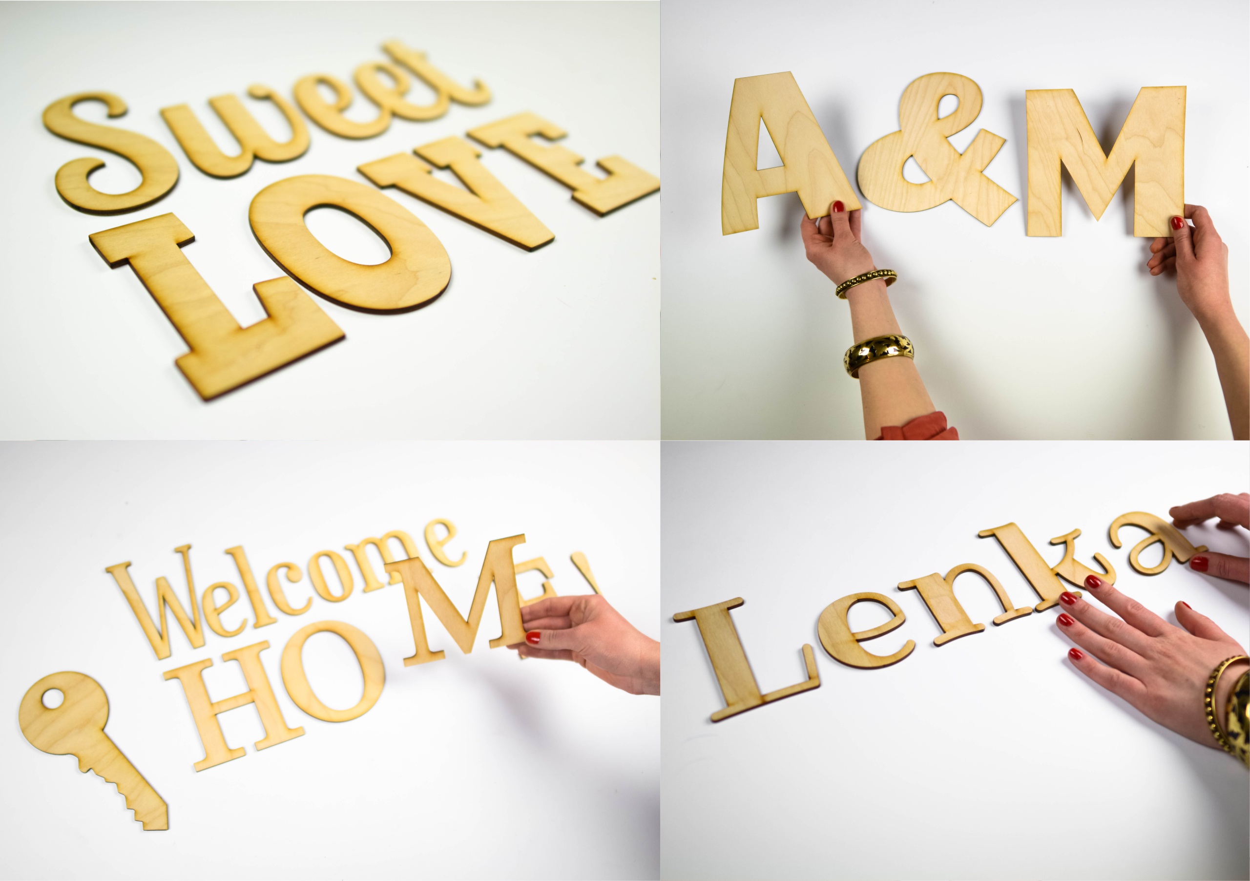 - Буквы, вырезанные из необработанной березовой фанеры толщиной 4 мм.