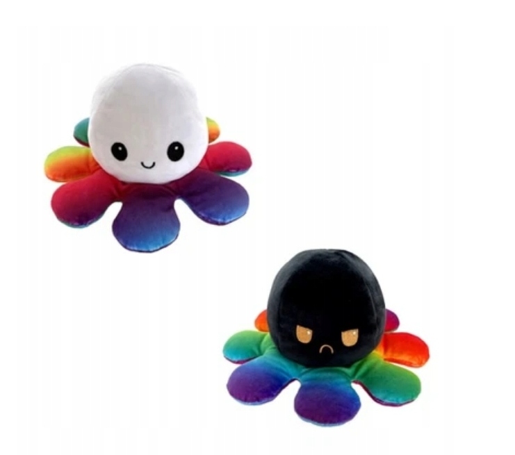 КРАСИВАЯ ДВУСТОРОННЯЯ ИГРУШКА ОСЬМИНОГ, ЧЕРНО-БЕЛАЯ, С РАДУЖНЫМИ НОЖКАМИ,