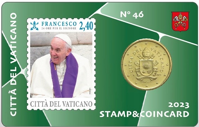 Ватикан, монетна картка номіналом 50 євроцентів № 46 плюс марка 2,40 євро, 2023 р.