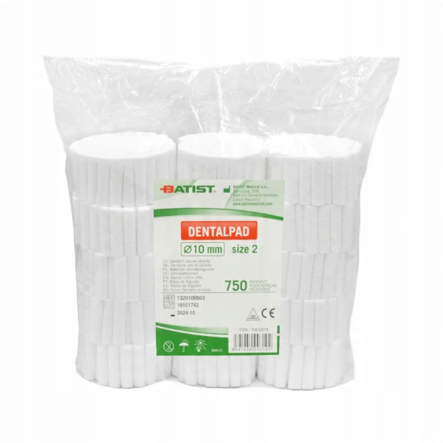 Стоматологические валики изготовлены из 100% хлопка, свернуты в форме цилиндра с закаленной поверхностью. Они сохраняют форму после замачивания, устойчивы к трению и не расслаиваются. Благодаря использованию чистого хлопка они достигают высокой впитывающей способности.