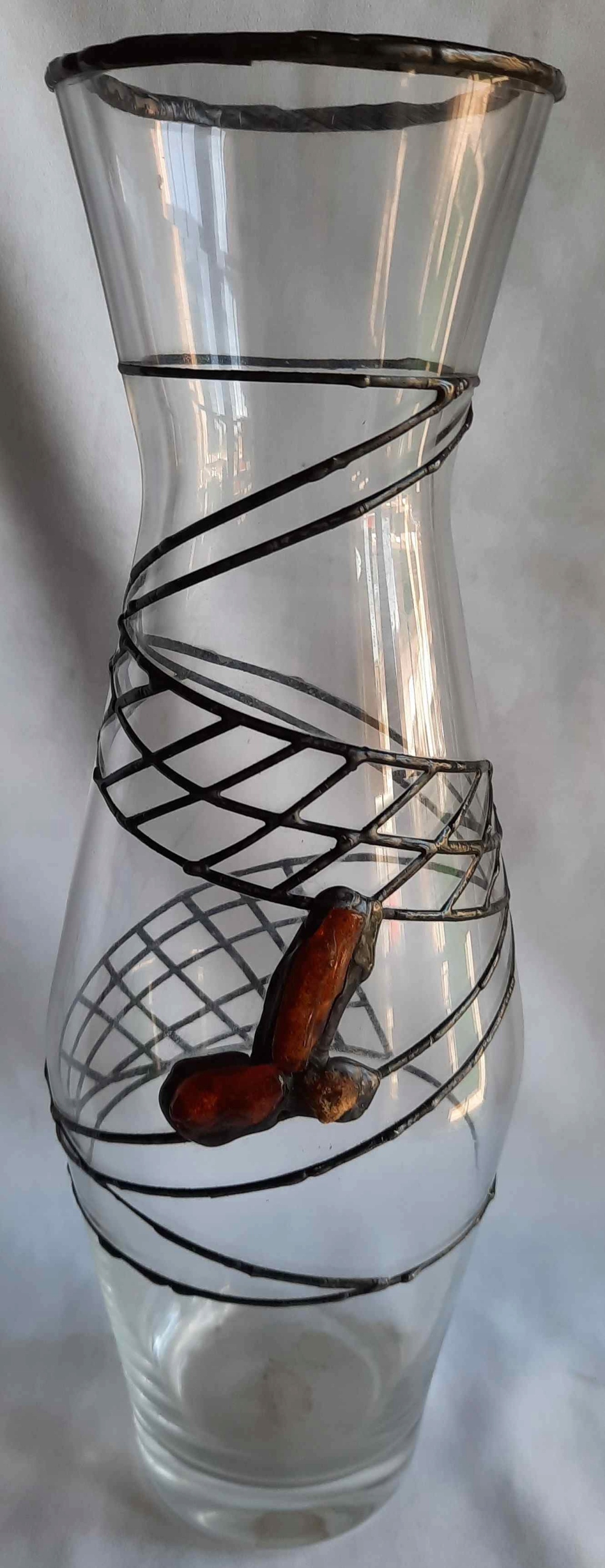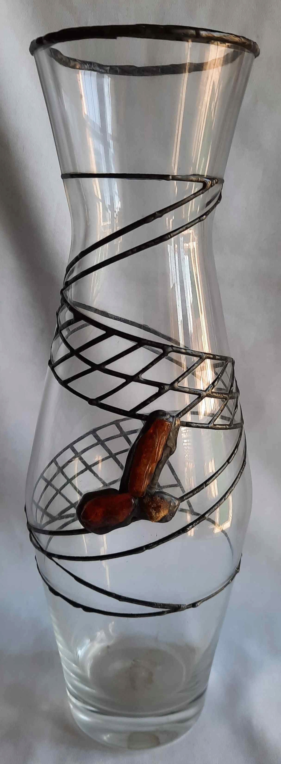 Ваза с янтарем и тесьмой, Художественное стекло PRL Vintage