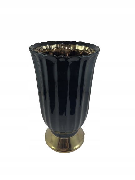 Декоративная ваза для цветов изготовлена из керамики. Ваза черная с золотом. Идеально подходит для живых/искусственных цветов; его можно использовать как украшение центра стола или как элемент всей композиции.