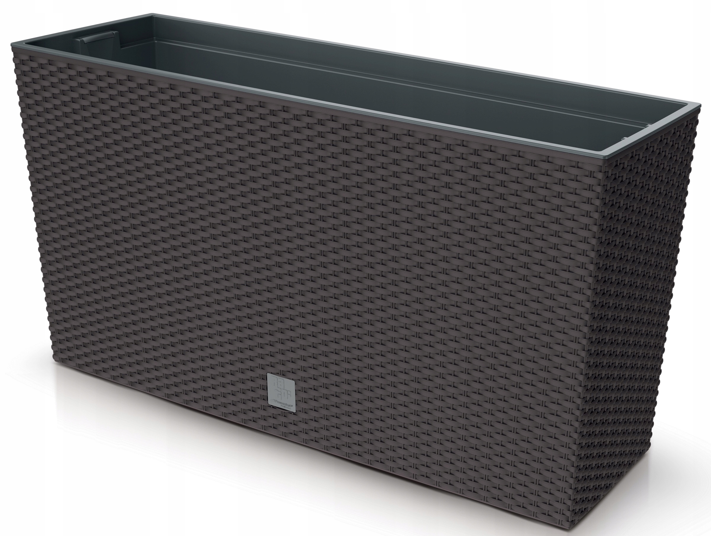 Балконный цветочный горшок в виде высокого ящика прекрасно впишется в любой интерьер. Своей текстурой он изящно имитирует ротанг, внешний вид которого уже много лет соответствует всем тенденциям дизайна.