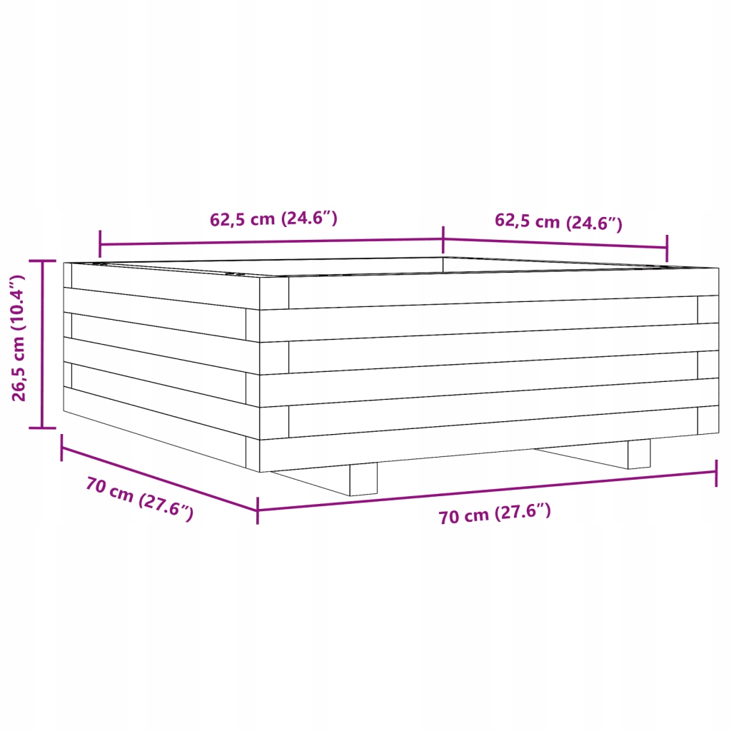 Вазон садовий, білий, 70х70х26,5 см, масив сосни