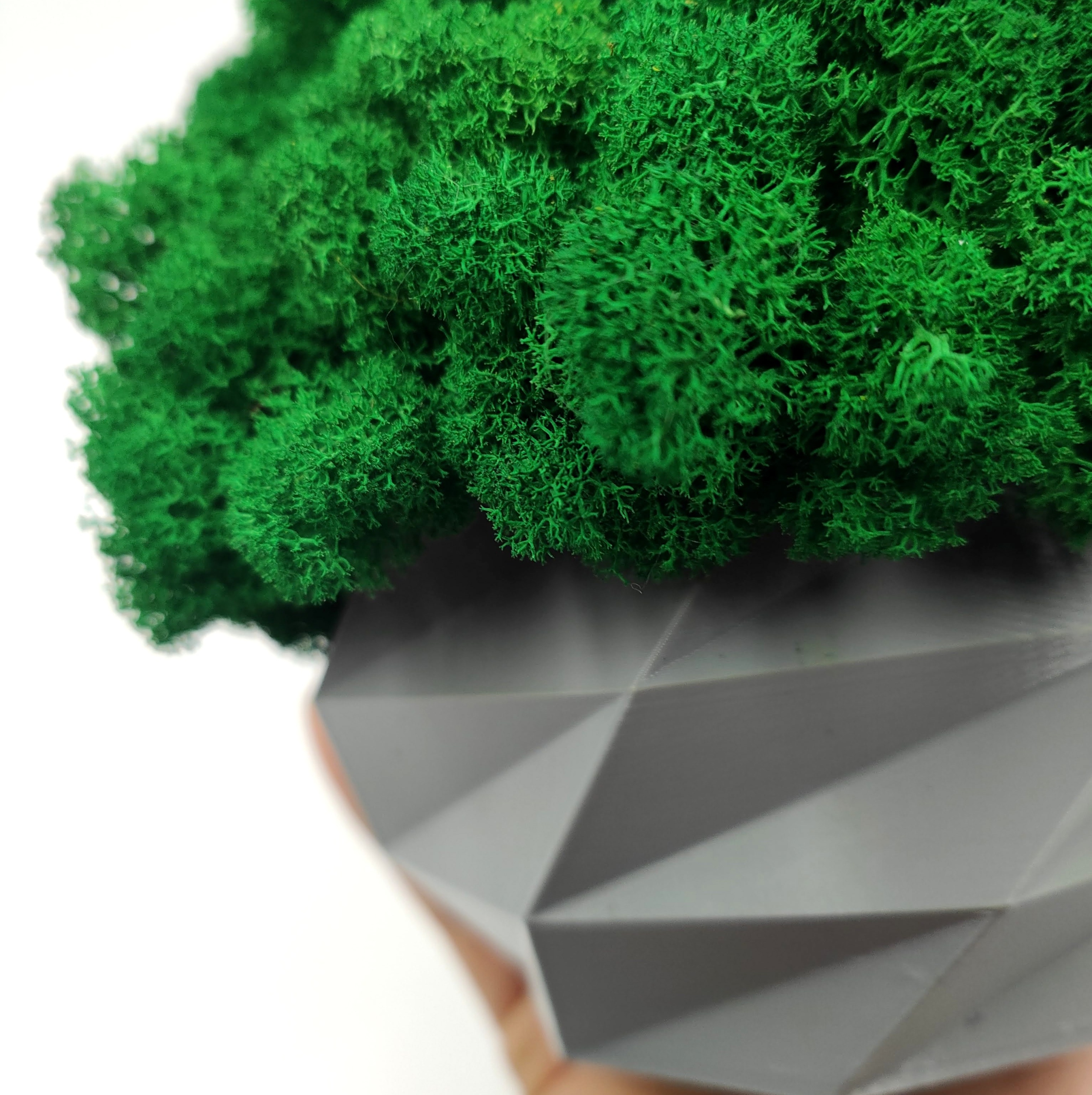 Вазон с мхом хроботек, 18 см, мох хроботек в сером горшке, 3D печать