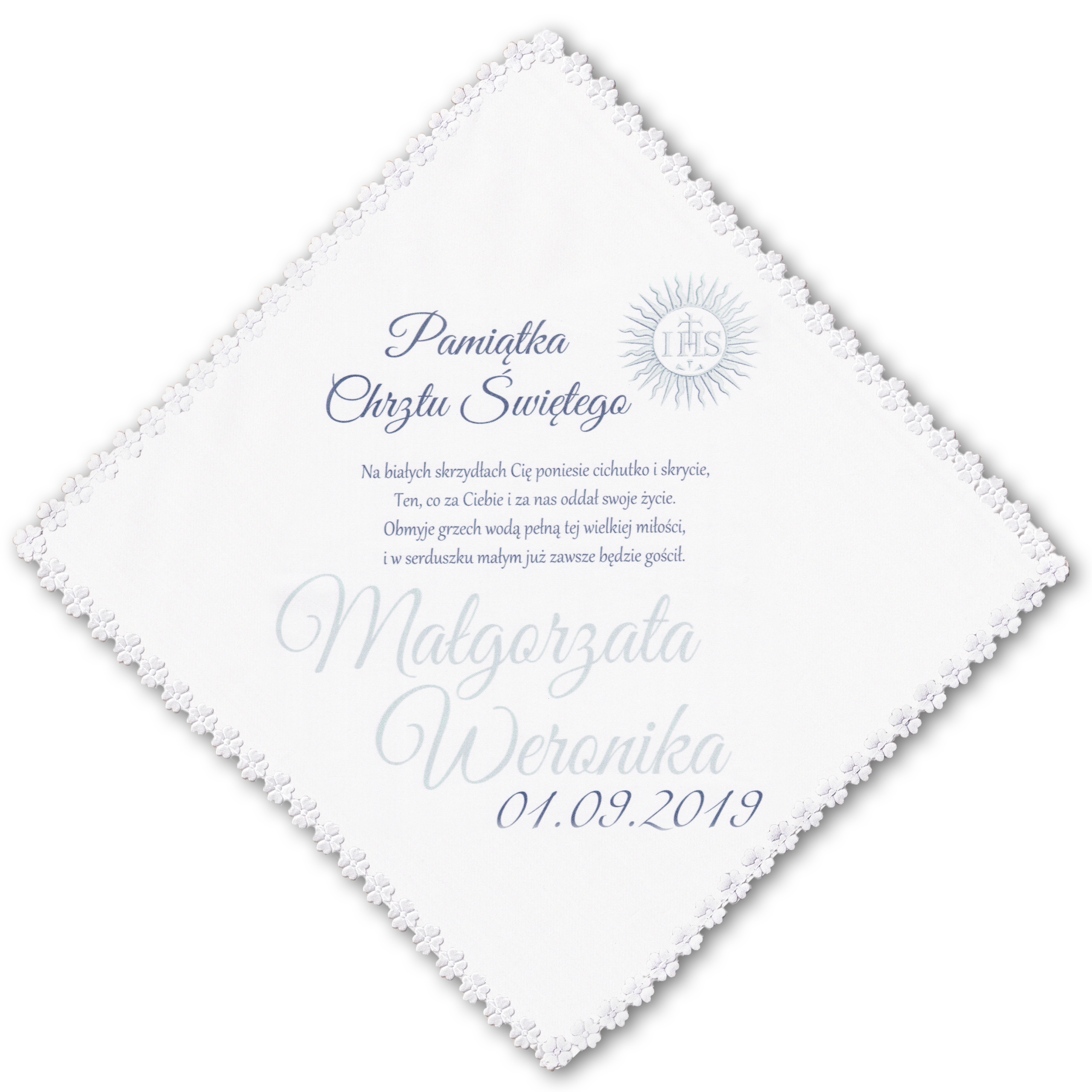 Элегантное квадратное одеяние Папы Иоанна Павла II и бордовое имя ребенка. Идеальная модель как для девочек, так и для мальчиков.