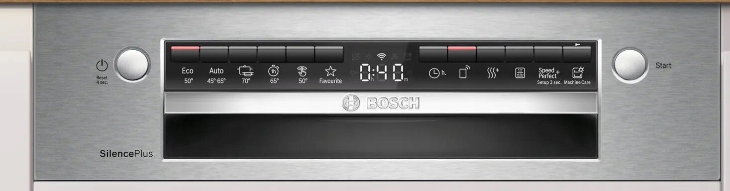 - Дополнительные функции: Автоматическое распознавание моющего средства, Тихая работа, SpeedPerfect Plus, Интенсивная зона, Система защиты стекла, Индикатор оставшегося времени, Теплообменник.