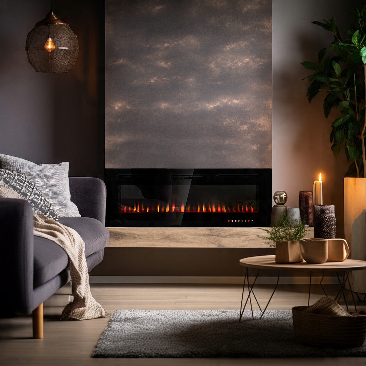 Встроенный электрический камин с функцией отопления 1800 Вт + пульт дистанционного управления + Wi-Fi