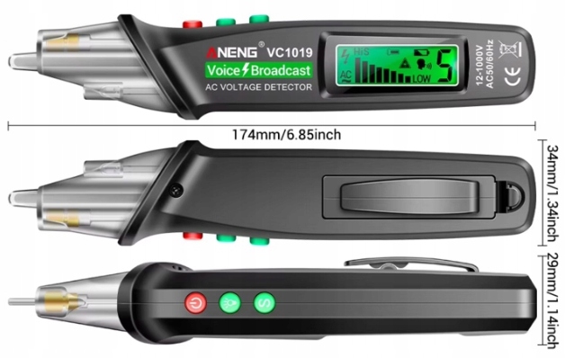 VC1019 Тестер напряжения со звуком и световой сигнализацией 12-1000V NCV Areng