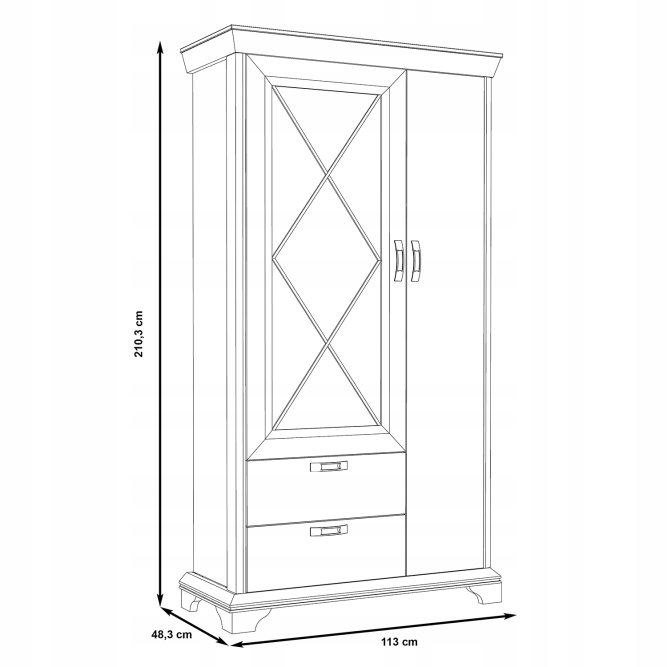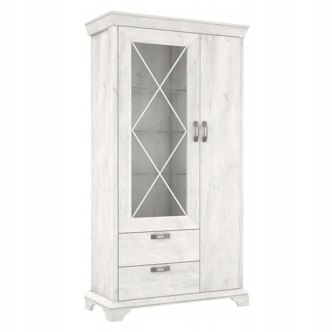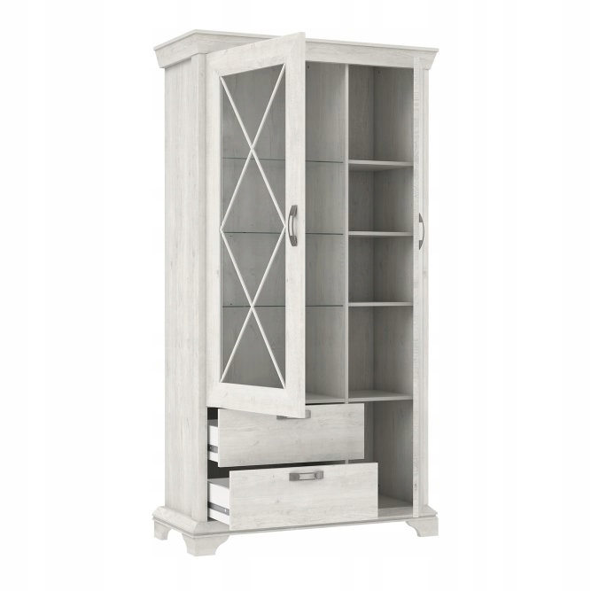 Высокий и узкий участок, идеально подходит для гостиной или столовой. Он состоит из двух закрытых углублений, которые гарантируют много места для хранения. Двери левых веб -сайтов, оснащенные полухливными дверями, благодаря тому, что половина полков идеально видна и идеально подходит для демонстрации украшений