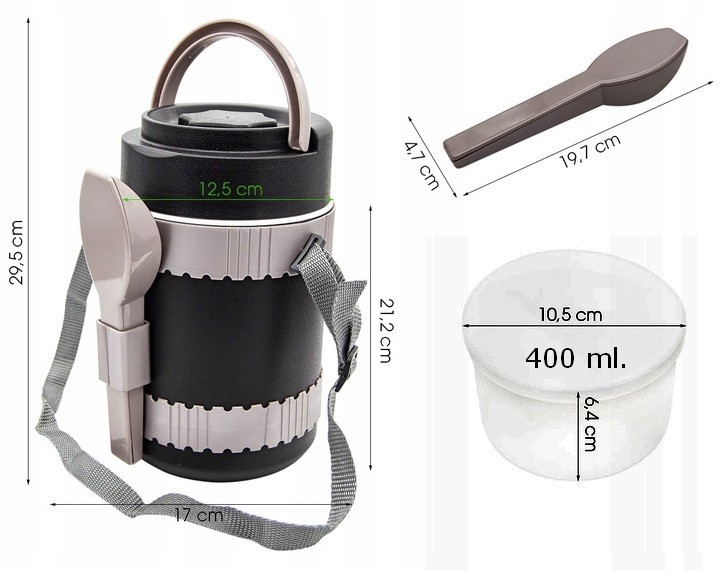 - Общая пропускная способность термоса: 1800 мл. Кемпинг! 3 контейнеры из высококачественного PP для хранения продуктов питания, например, супов, картофеля, салатов. ложка и вилка помещены в защитную коробку с возможностью прикрепления термоса к стене