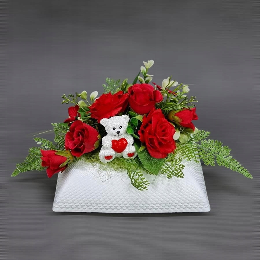 ВЕДМІДЬ ТРОЯНДИ червоний (484.1) оформлення на дитячу могилу, дитяче кладовище