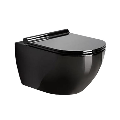 Унитаз из черной сантехнической керамики. Форма чаши позволяет оптимально использовать пространство, а инновационная система Rimless обеспечивает функциональность. Сиденье для унитаза поставляется с доской на ваш выбор: тонкой или стандартной с плавным закрыванием.