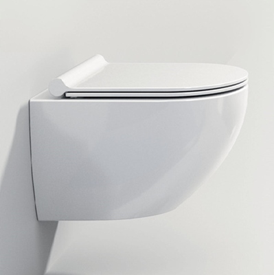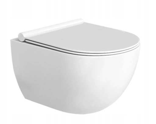 Унитаз из белоснежной санитарной керамики. Форма чаши позволяет оптимально использовать пространство, а инновационная система Rimless обеспечивает функциональность. Сиденье для унитаза оснащено тонким дюропластовым сиденьем с функцией плавного закрывания.