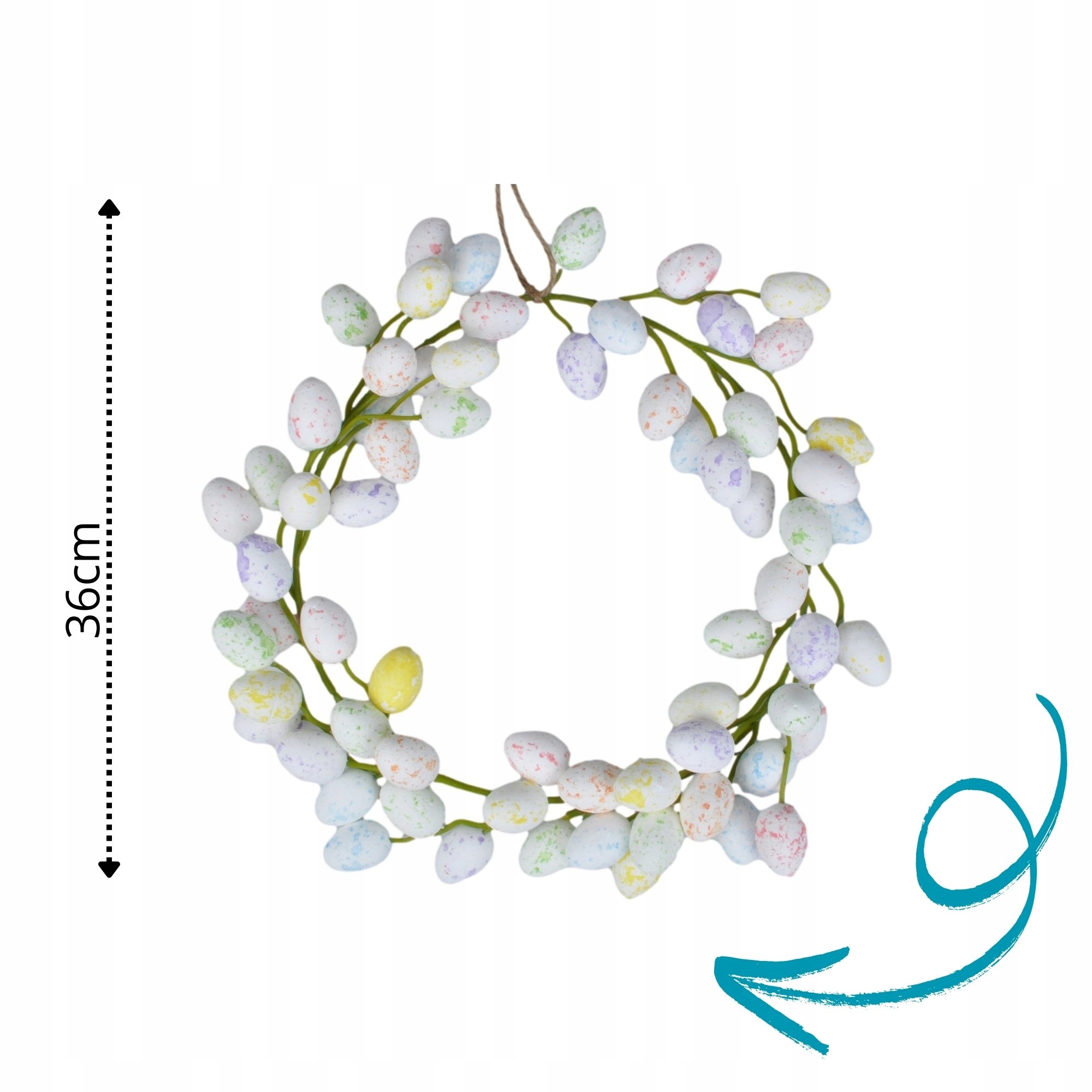 🔹 Красивые яйца на венке венок украшен тщательно отобранными яйцами, которые являются основным украшением. Их тонкие цвета и эстетическая расположение добавляют очарование и радость каждому пространству.