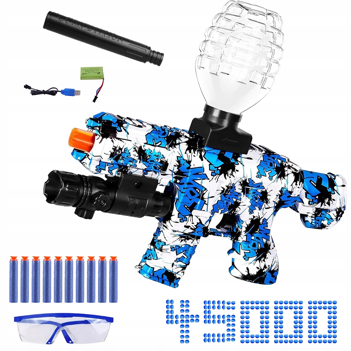 ⭐ ⭐ Гель -муниципалитеты, электрические гелевые пометы из 45 000 боеприпасов и защитных очков для спортивных и командных игр на открытом воздухе, подарочная игрушка для взрослых от 12 лет (синий камуфляж) ⭐