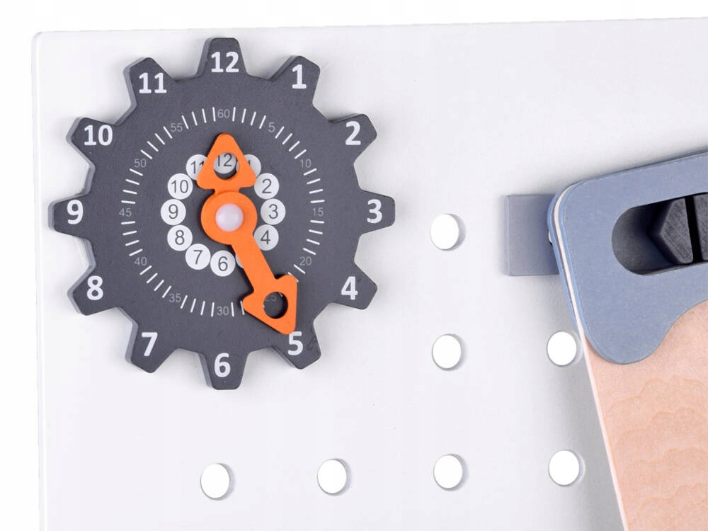 Большая деревянная мастерская для маленького любителя DIY – это вневременная замечательная игрушка, которая наверняка понравится каждому мальчику. Набор состоит из множества деревянных деталей и 55 аксессуаров и оснащен всеми необходимыми в профессиональной мастерской элементами. Здесь вы найдете необходимые инструменты для работы, среди прочего: отвертка, молоток, шурупы, шестеренки, гайки, мерные стаканчики, щипцы, пила, гаечные ключи и т. д., а также вместительный ящик для инструментов, черная классная доска и часы с подвижными стрелками. Такое количество деталей позволяет безгранично веселиться в процветающей ремонтной мастерской, можно играть с отдельными элементами набора, поэтому веселье не надоест быстро.