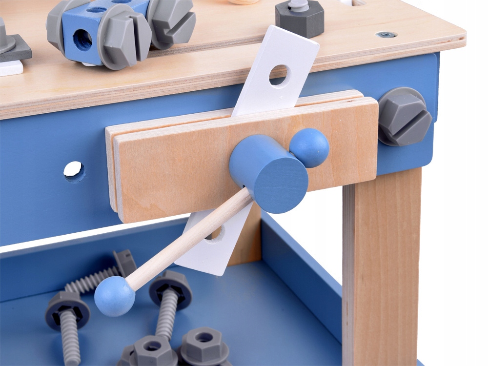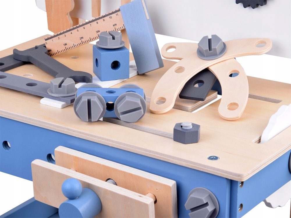*⃣ из твердой древесины, мастерская является долговечной, безопасной и эстетической, , и его естественные цвета в сочетании с синими акцентами привлекут внимание каждого ребенка.