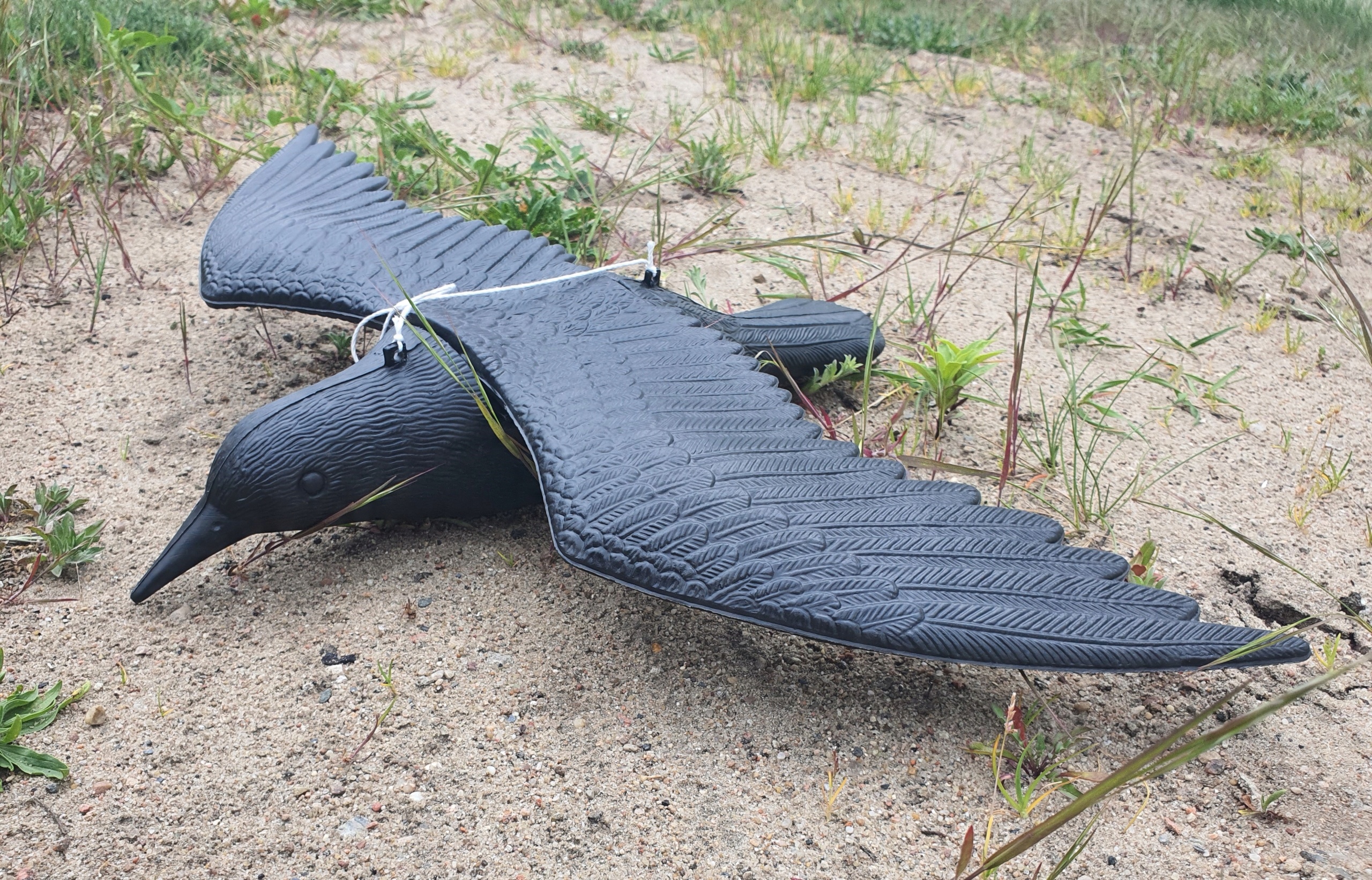 Фигурку следует подвешивать на верёвке, привязанной за спину, в любом месте, где птица будет перемещаться при ветре.