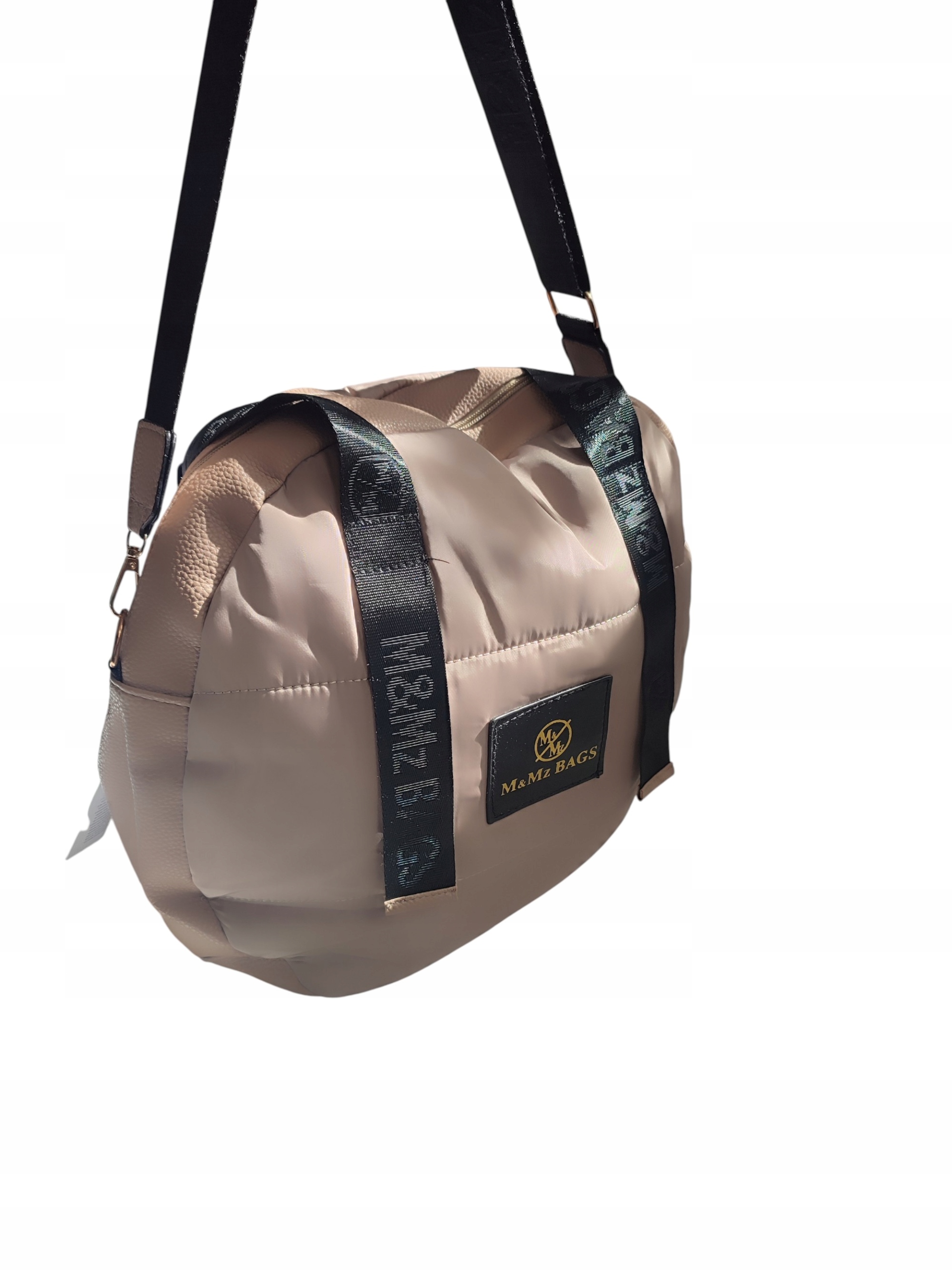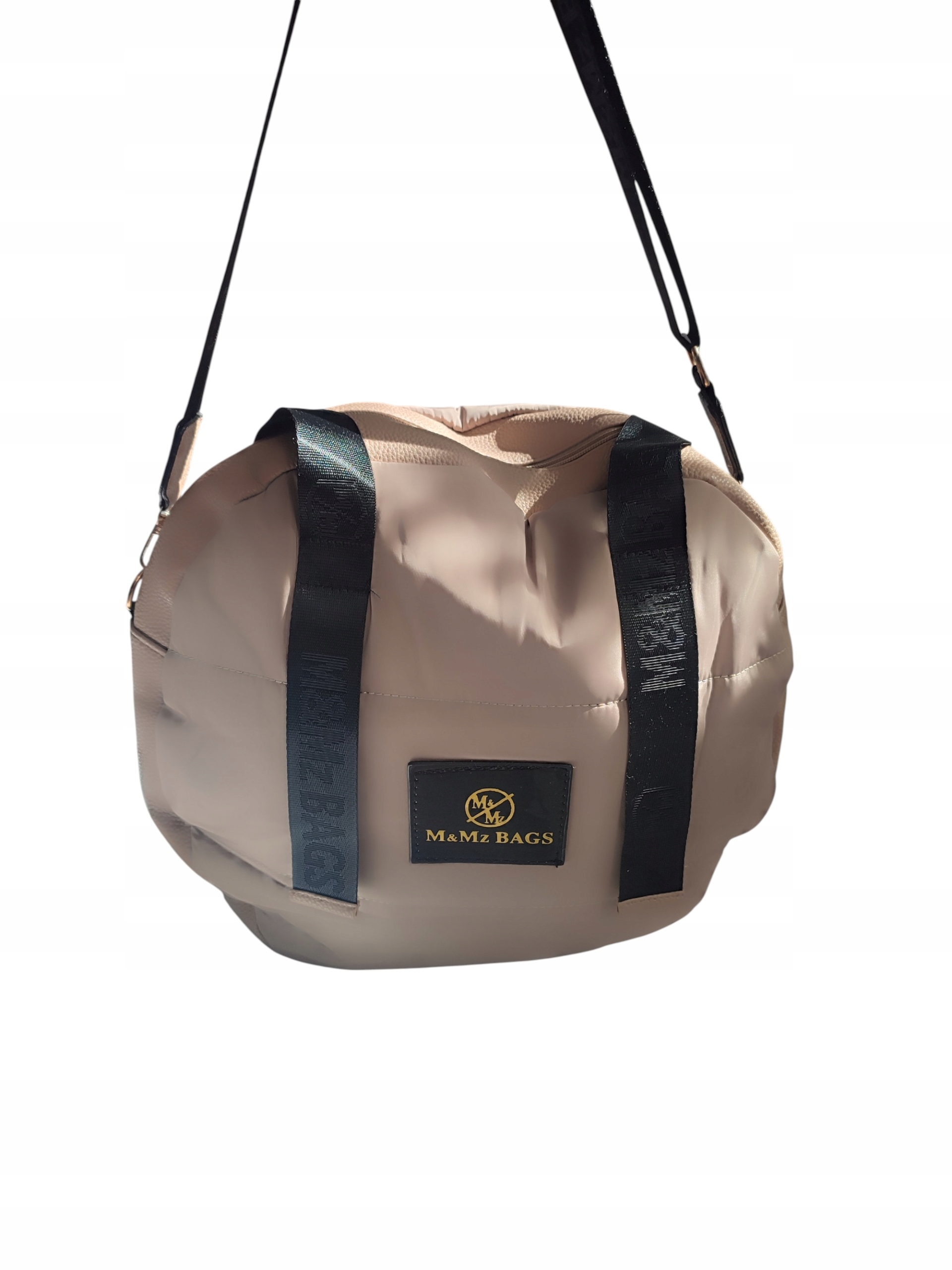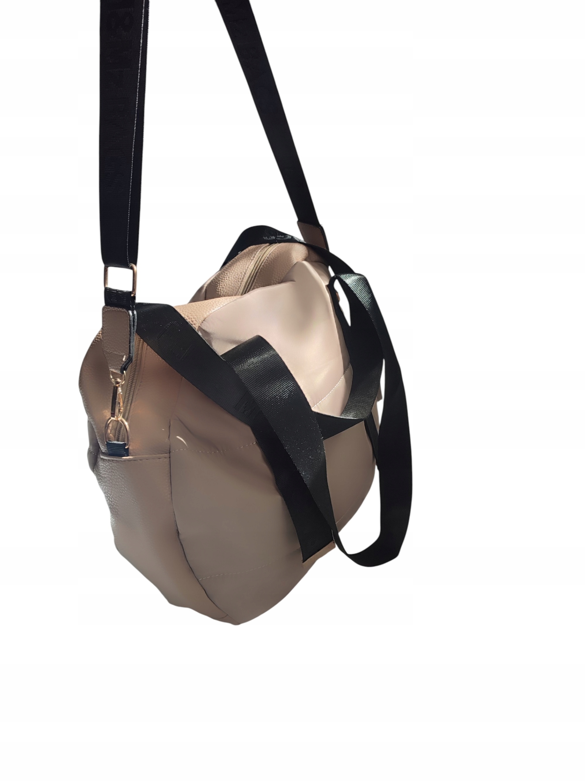 Практическая и стильная женская сумка бежевого цвета из прочного нейлона с элегантной вставкой из экокожи.