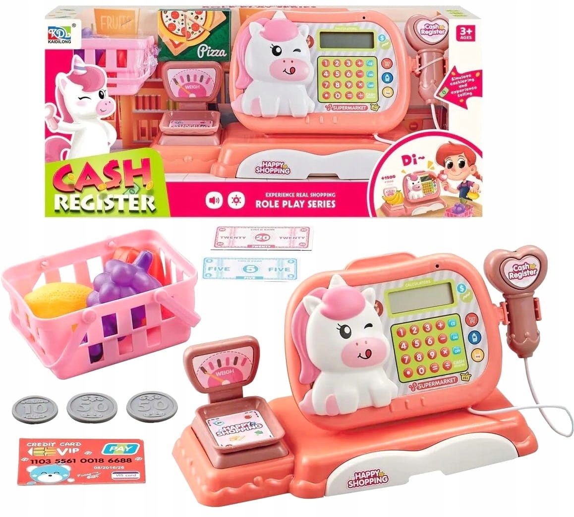 БОЛЬШАЯ КАССА В МАГАЗИНЕ С КАЛЬКУЛЯТОРОМ И ЗВУКОМ СВЕТА ЕДИНОРОГА