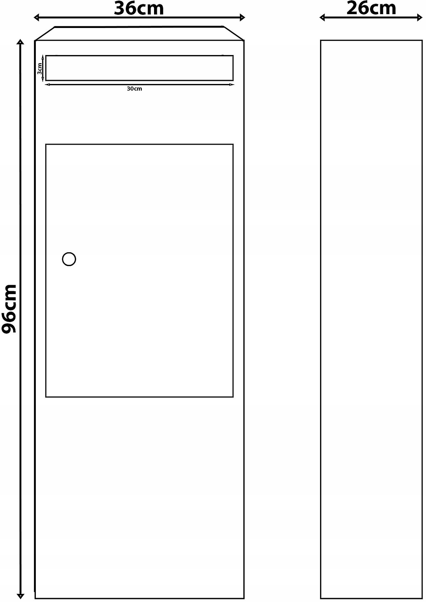 - Метод получения поста и посылок - с передней части, открывающейся двери для себя, петли
