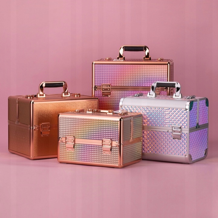 ✨ Косметичка XXXL Чемодан 4в1 на поворотных колесах на 360 градусов Diamond 3D Rose Golden (фурнитура из розового золота) ✨