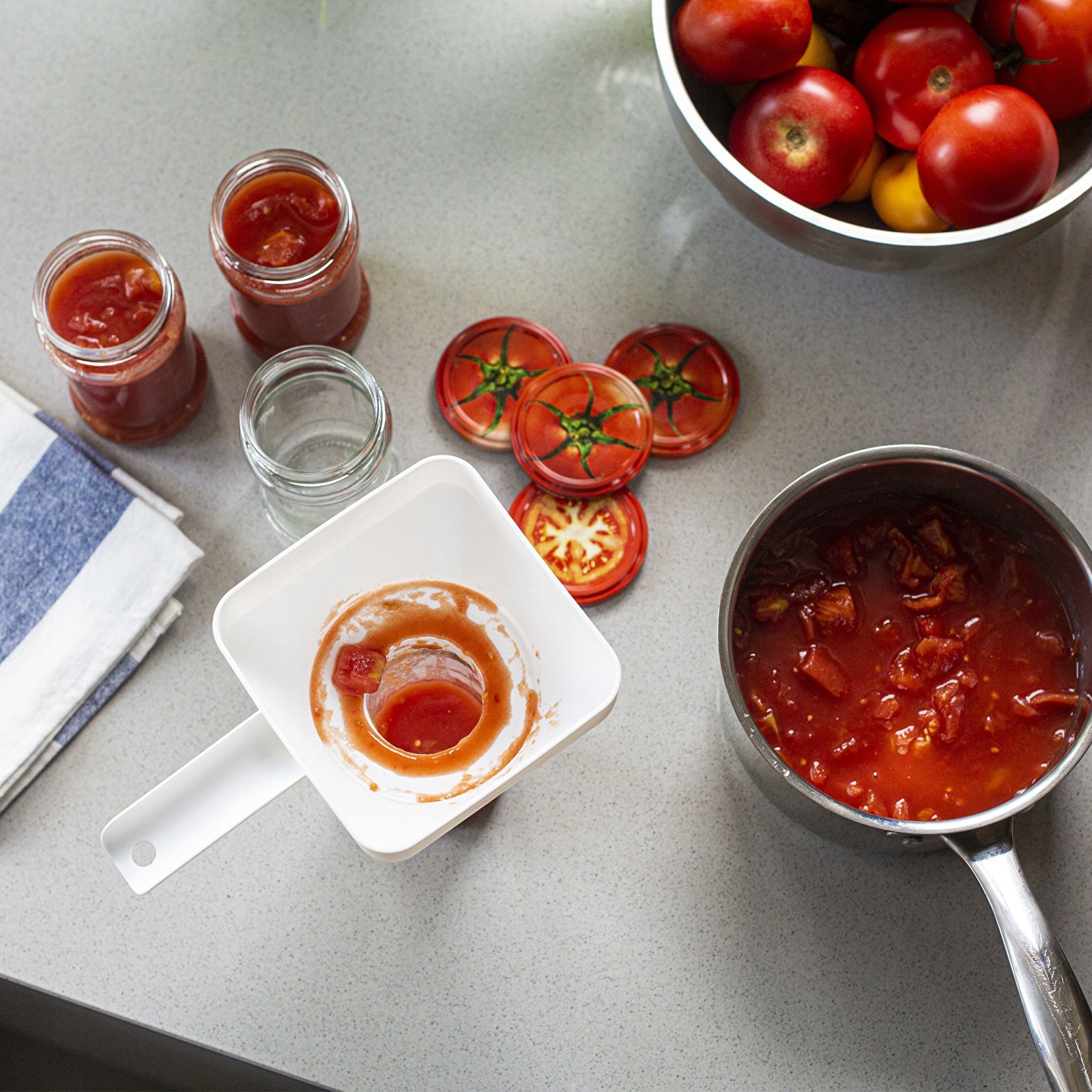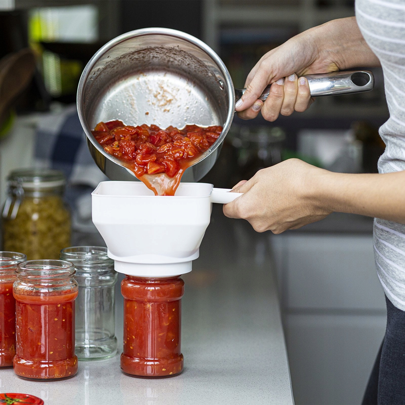 Современная практичная воронка для консервирования квадратной формы.