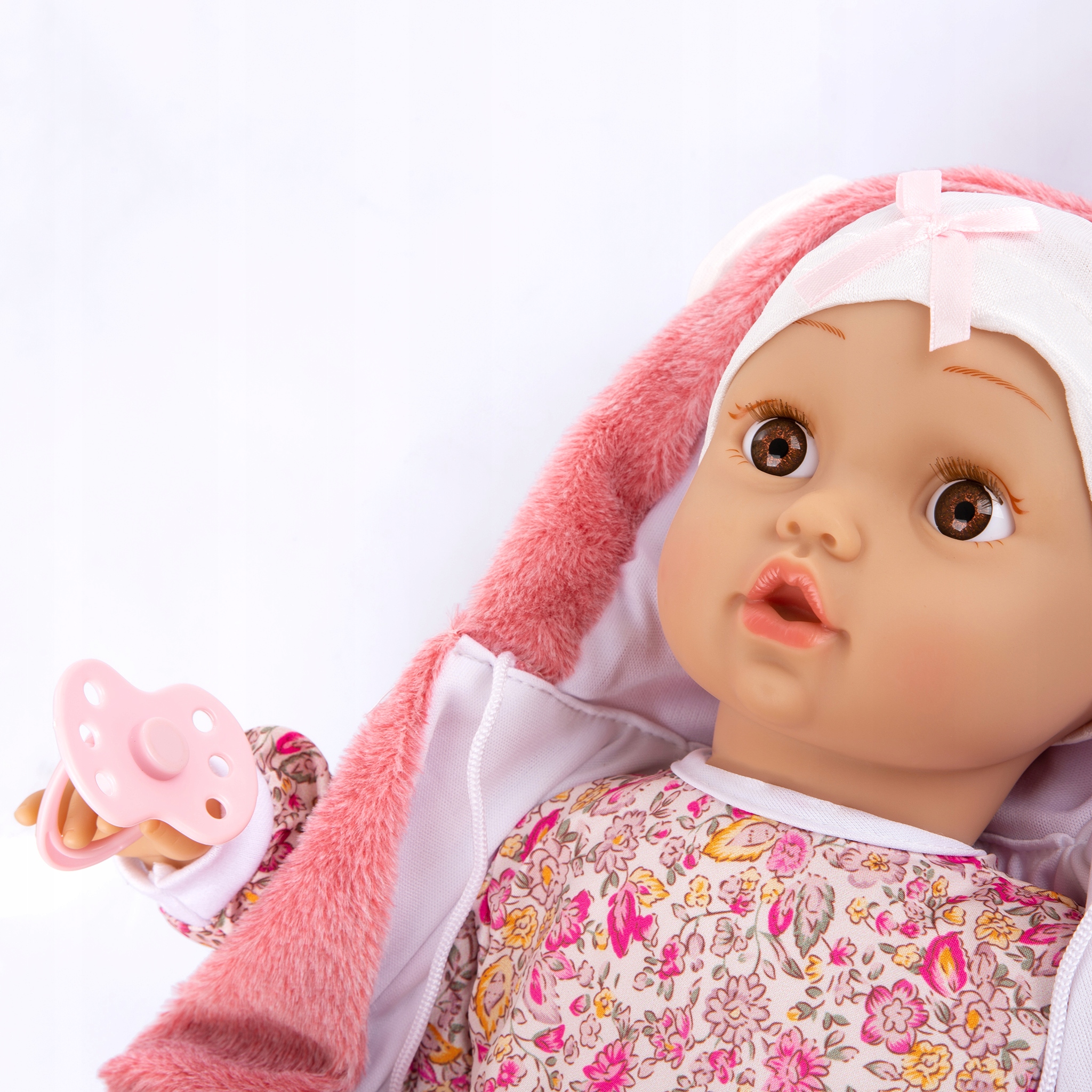 Малышка обладает веселым, милым лицом и < б>большие глаза с веселым лицом. Она выглядит как настоящий ребенок, одетая в мягкую одежду. Одежду легко снять и постирать, поэтому куклу легко содержать в чистоте.