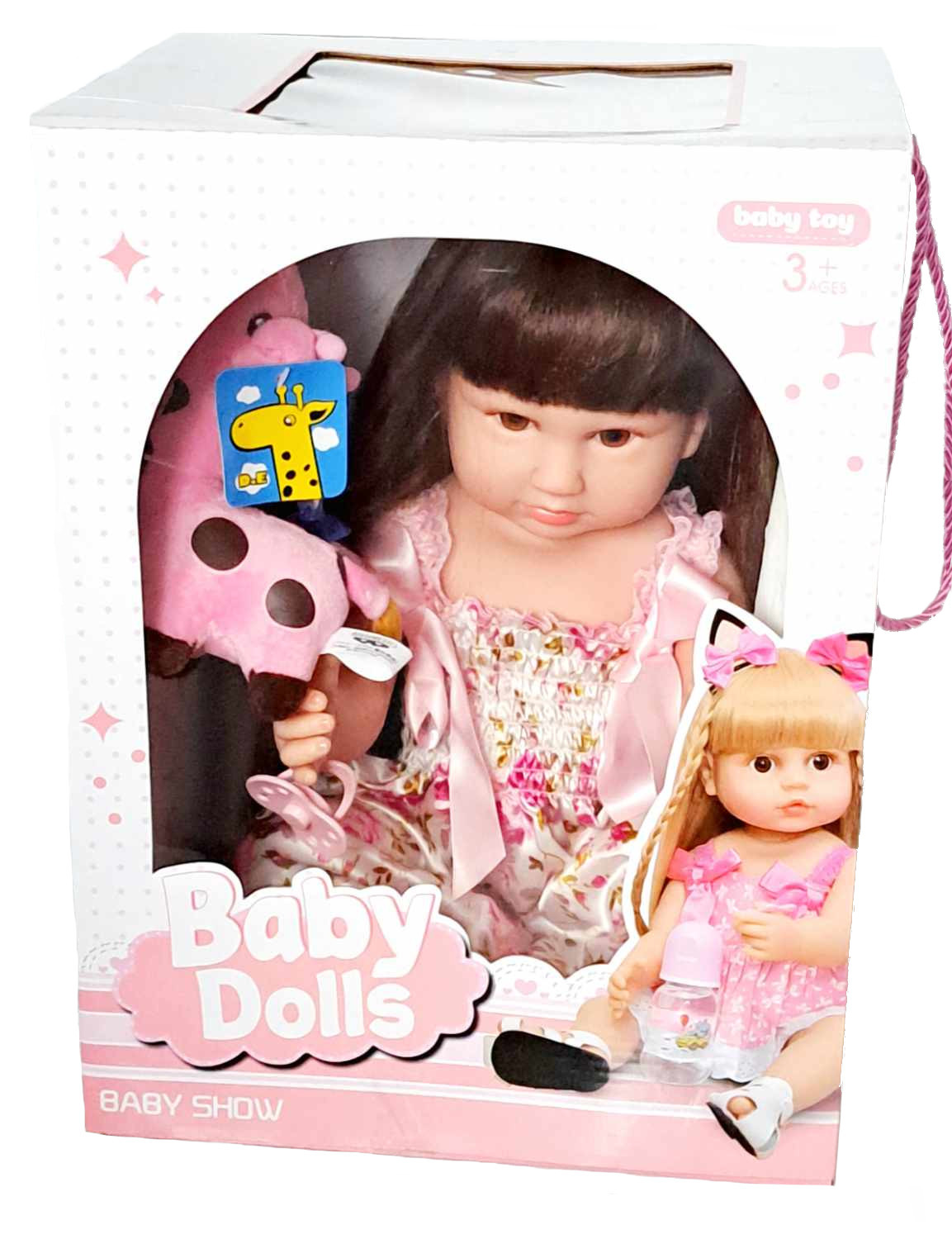 Кукла изготовлена из мягкого материала, имеет подвижные ручки и ножки, поворачивает голову, это легко одеться. На ней красивый, яркий комбинезон, и маленькая детская одежда ей тоже подойдет. У куклы есть собственный плюшевый розовый жираф, который также может стать талисманом вашего ребенка.
