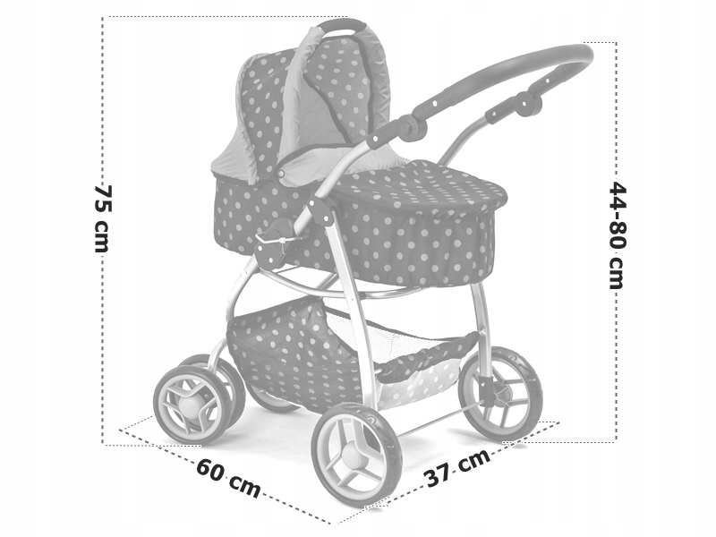 - 1-2 Суперсовременная, большая кукольная коляска - 4 функции - глубокая и спортивный, с возможностью установки гондолы/коляски с обеих сторон, лицом вперед или назад.