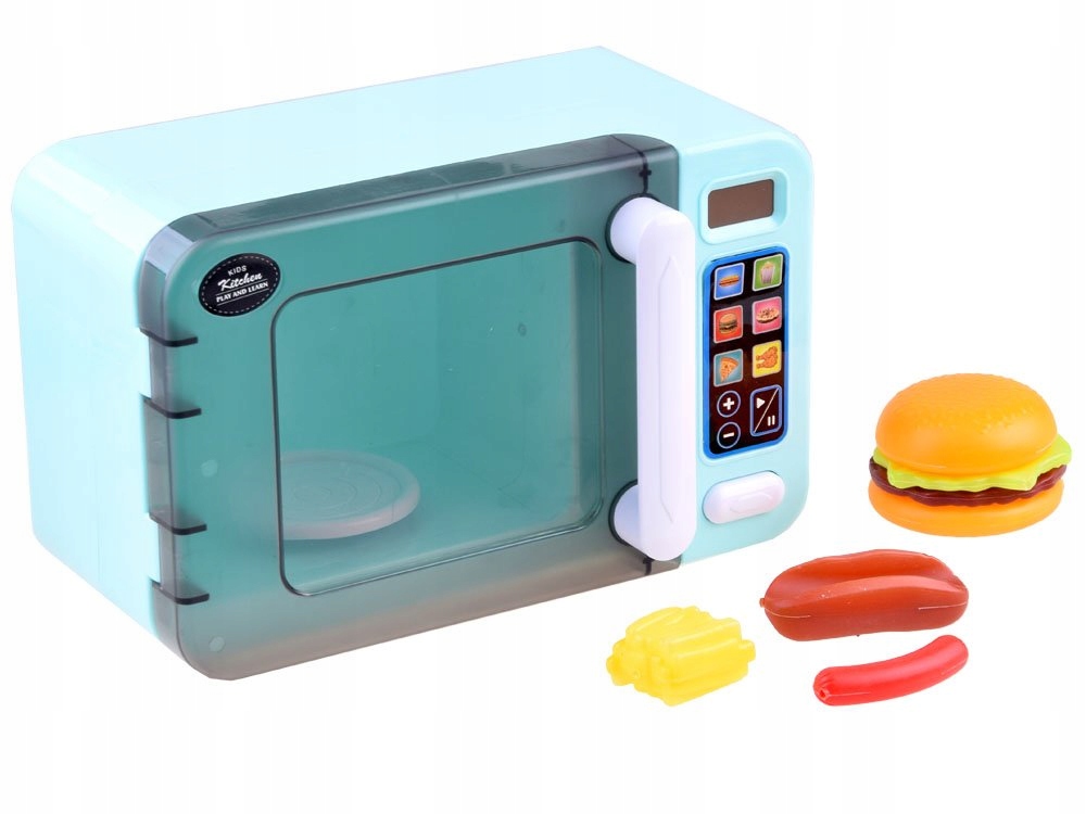 Игрушка, оснащенная кнопками с продуктами (Hod-Dog, попкорн, гамбургер, тесто, пицца, куриные ножки) позволит вам выбрать правильную кнопку и адаптировать ее к блюду. Игрушка имеет дисплей с измеренным временем, внутри поворота поворота поворота во время работы микроволновой печи. Дети любят наблюдать за взрослыми, поэтому такое оборудование позволит им проводить реалистичные игры.