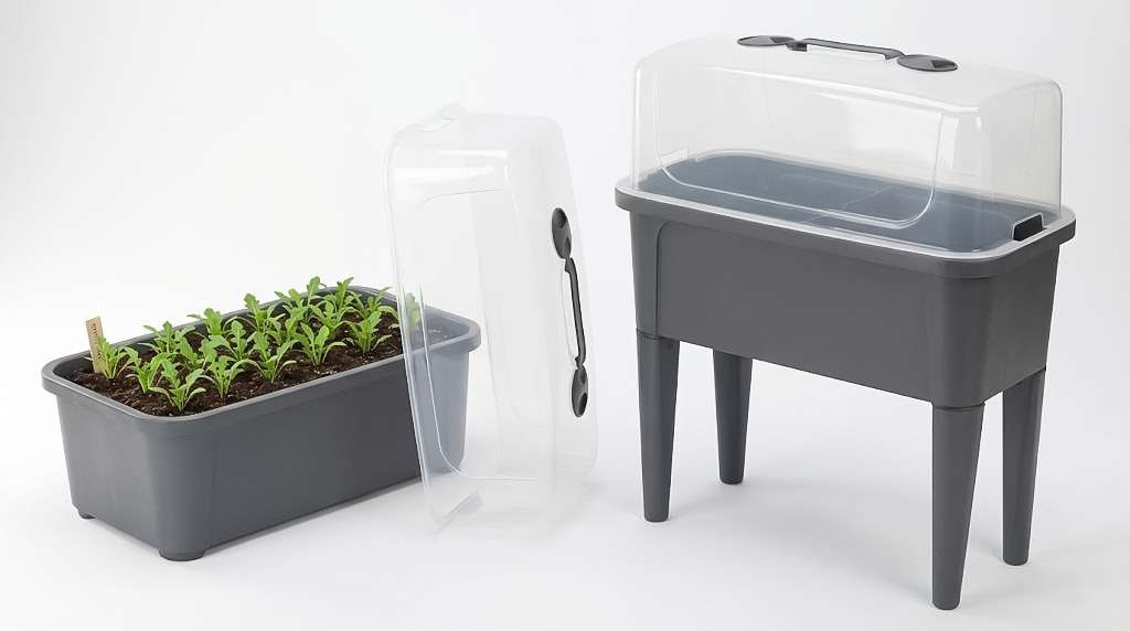 Благодаря крышке из прочного пластика стол-теплица защищает растения от ветра, дождя и низких температур. Выращивать его можно с самой ранней весны и даже зимой – достаточно поместить его в солнечное, защищенное место.