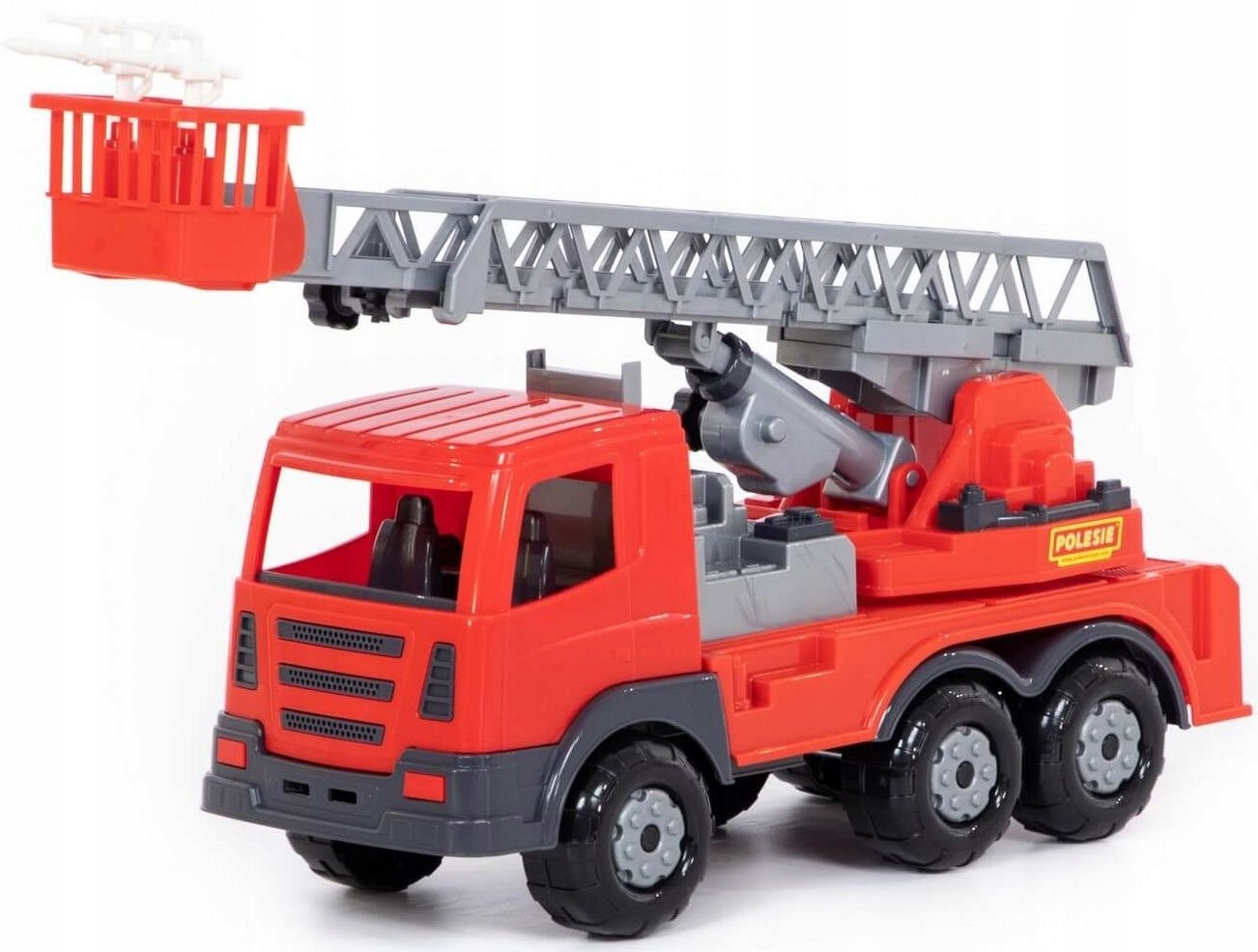 Машина имеет подъемник , выдвижная и вращающаяся лестница с подвижным подъемником корзины. Лестница поднимается и выдвигается с помощью удобных ручек. Лестничная платформа может вращаться примерно на 360°. Автомобиль выполнен из качественных материалов и выглядит крайне реалистично. Он имеет насыщенный красный цвет.
