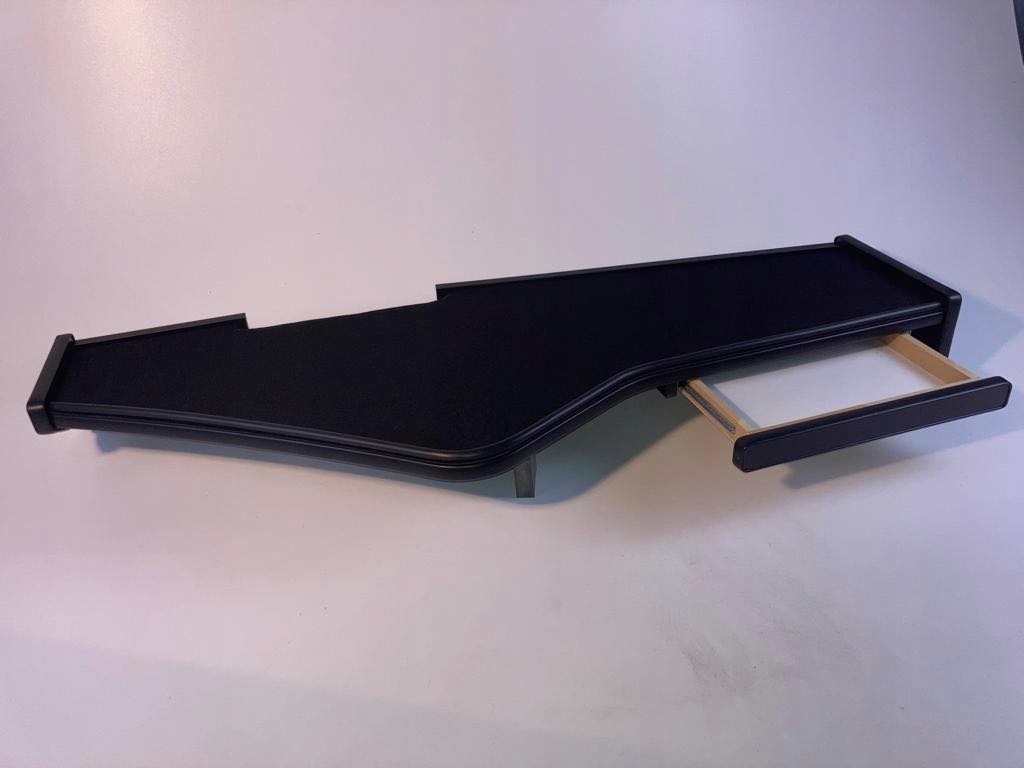 Полка обтянута черным бархатным ковролином.