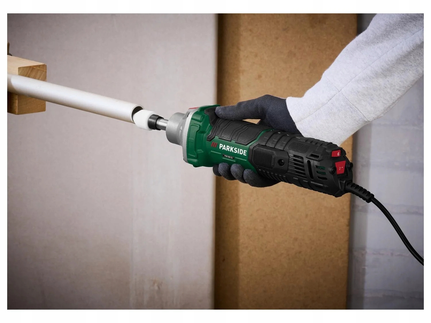 - Эргономический дизайн с неэффективной отделкой. Оборудование (например, аксессуары для простых PGSZ 7 A1 и A2 измельчителя от Parkside) 500 Вт