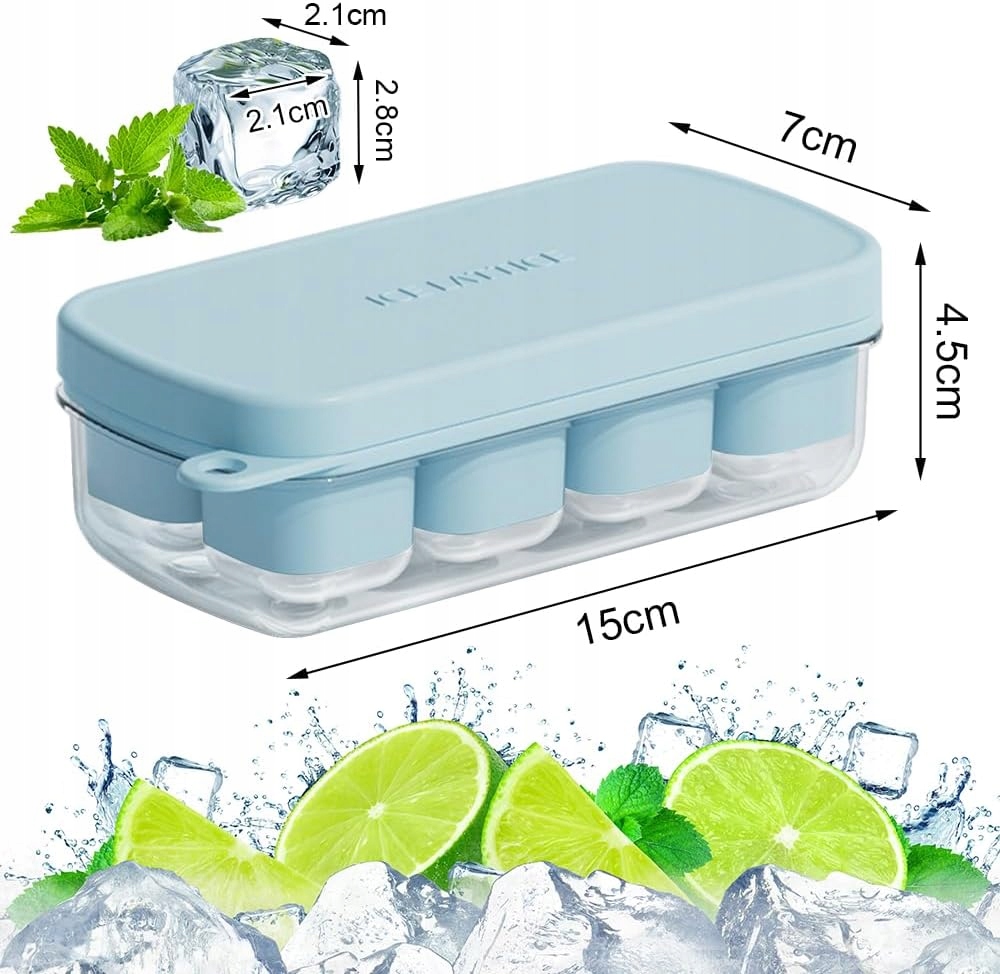 - Экономия места: лоток для кубиков льда имеет компактные размеры 15 х 7 х 4,5 см. Его можно хранить в холодильнике, экономя место. Закрытая конструкция крышки предотвращает попадание пыли и запаха и сохраняет кубики льда свежими.