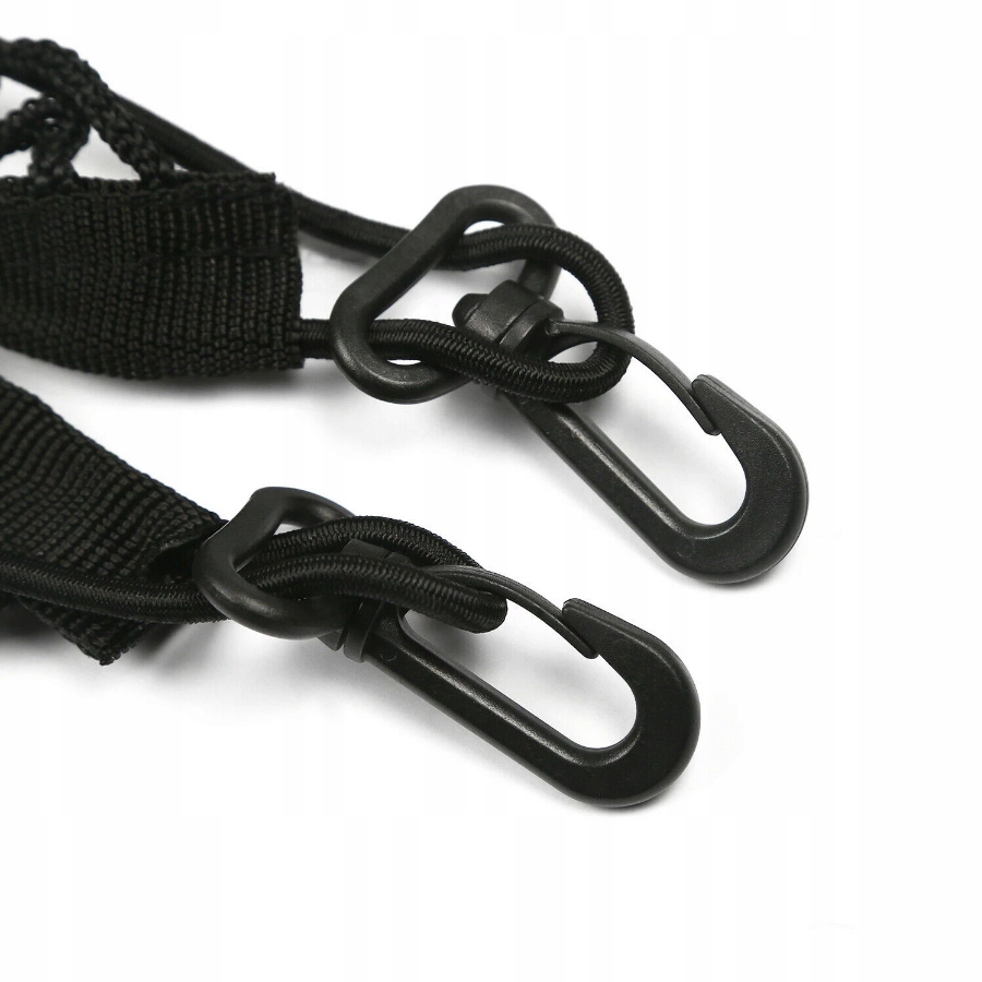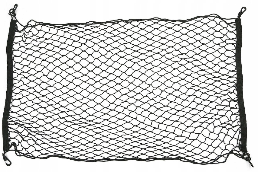 Сетка имеет 4 точки крепления с карабинами. Резинка, расположенная по периметру сетки, позволит подогнать ее под размер багажника.