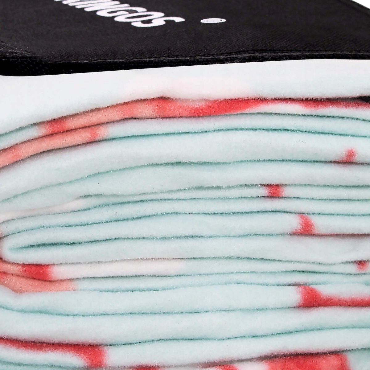 Поскольку одеяло предназначено для контакта с землей, нижний слой одеяла снабжен фольгой, которая прекрасно изолирует от холода и влажность. Верхний слой выполнен из плотного флиса - приятного на ощупь и мягкого. Его дополнительное преимущество — очень легко чистить.