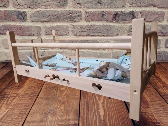 Колыбелька изготовлена из необработанного дерева, не покрыта лаком, можно покрасить по вашему усмотрению.