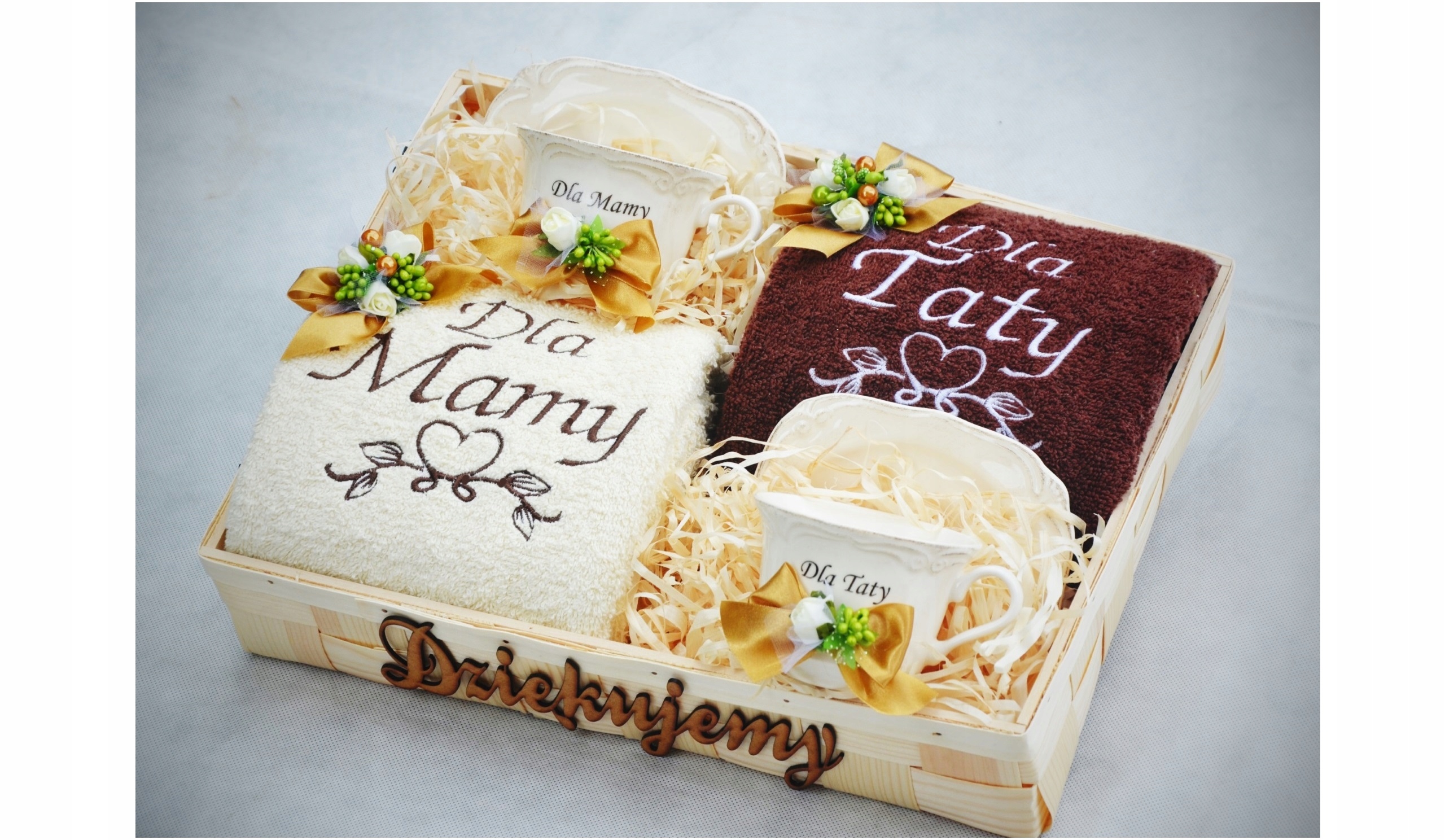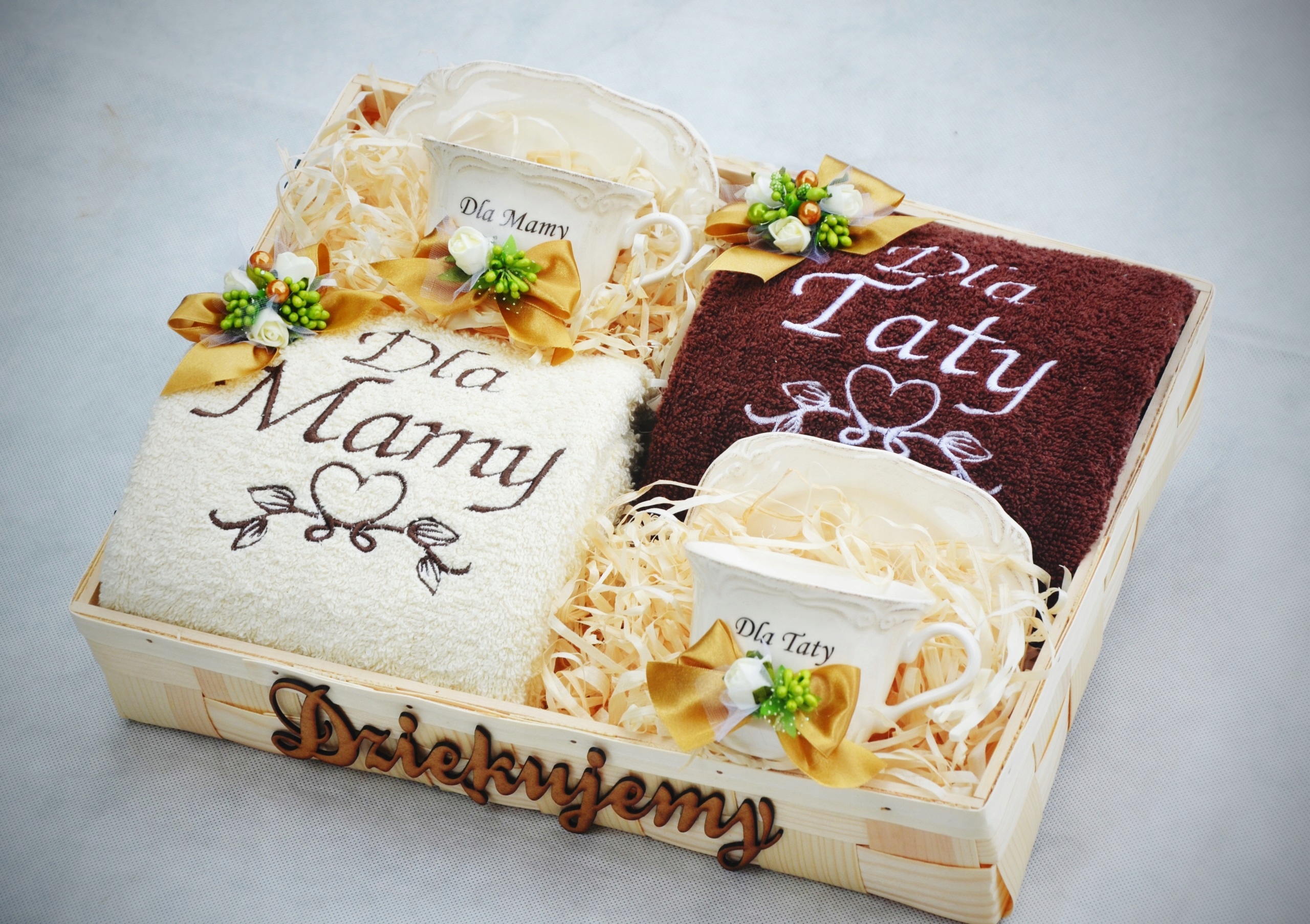 - украшение на полотенцах и чашках, выполненное квалифицированными флористами с использованием флористической фурнитуры высочайшего качества,